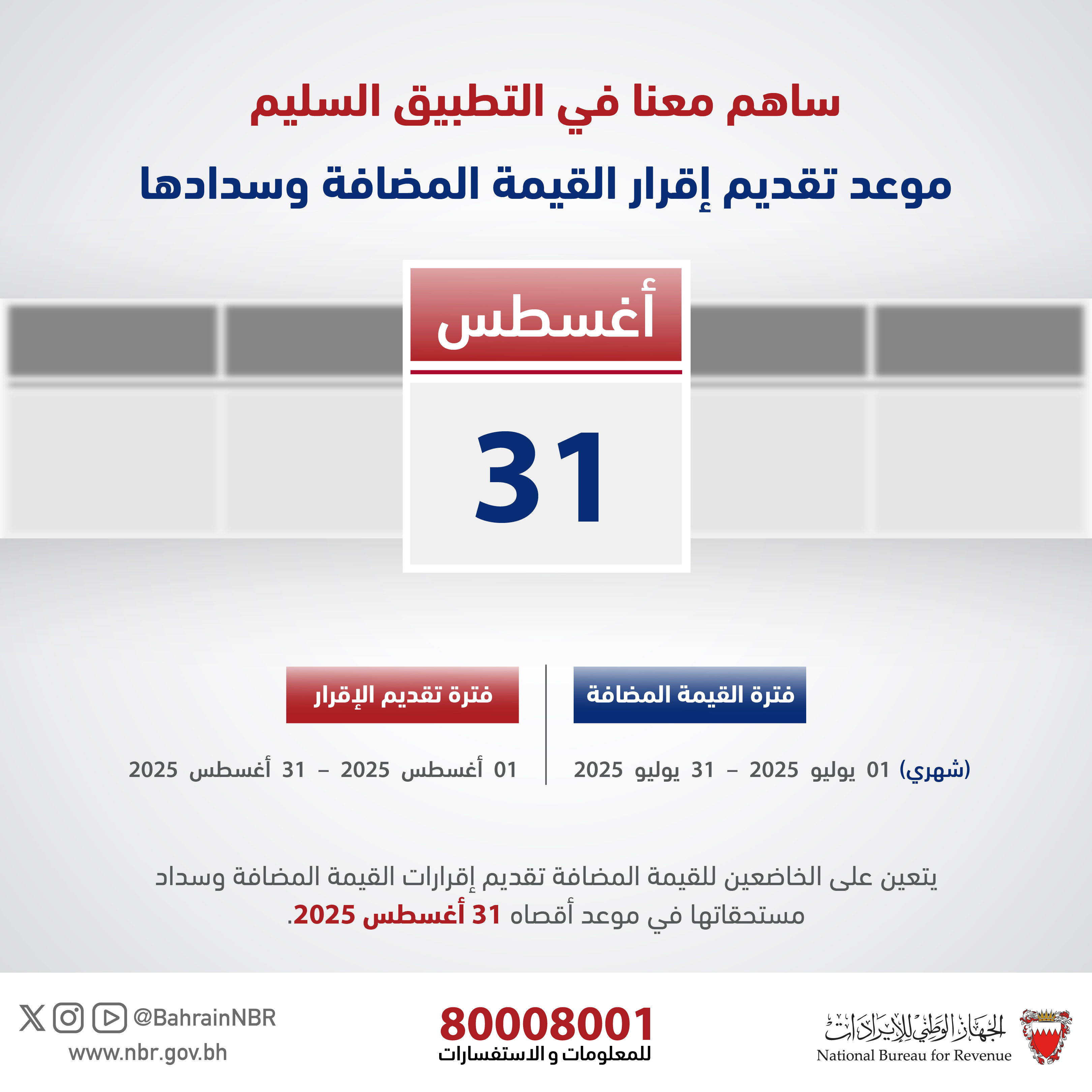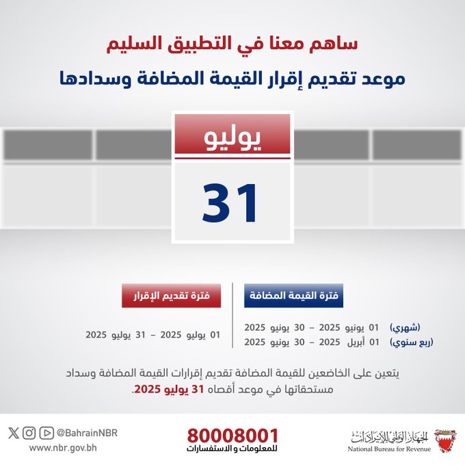 موعد تقديم إقرار القيمة المضافة وسدادها