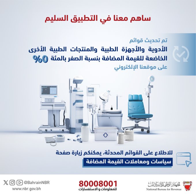 قوائم القطاع الصحي الخاضعة للقيمة المضافة بنسبة الصفر بالمئة