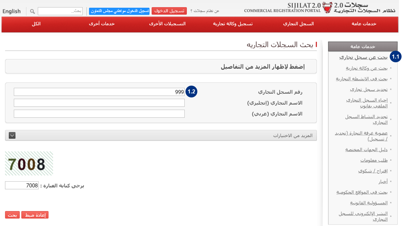 البحث عن السجل التجاري الخاص بك على نظام سجلات (Sijilat.bh)
